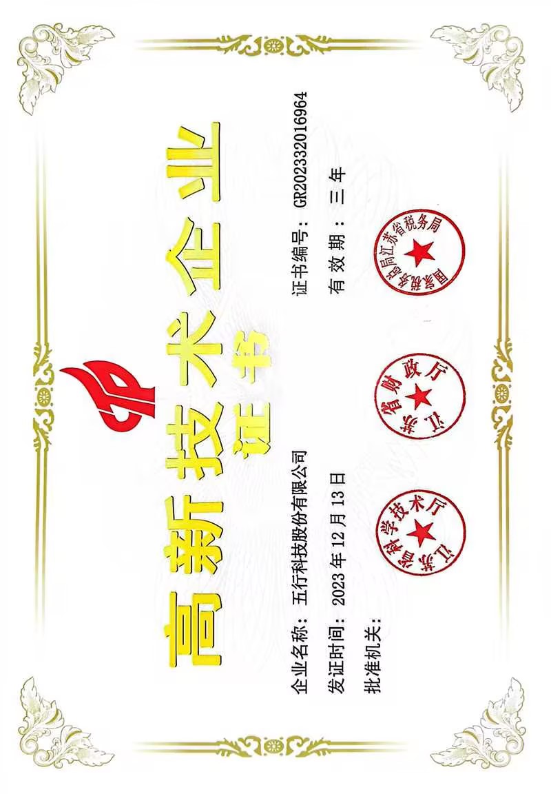 五行科技注重科技研發(fā),持續(xù)多年高投入、高產(chǎn)出,累計(jì)形成并轉(zhuǎn)化科技成果達(dá)300多項(xiàng),自2008年至今一直被科技、財(cái)政、稅務(wù)聯(lián)合認(rèn)定為“高新技術(shù)企業(yè)”,是知識(shí)密集、技術(shù)密集的經(jīng)濟(jì)實(shí)體。