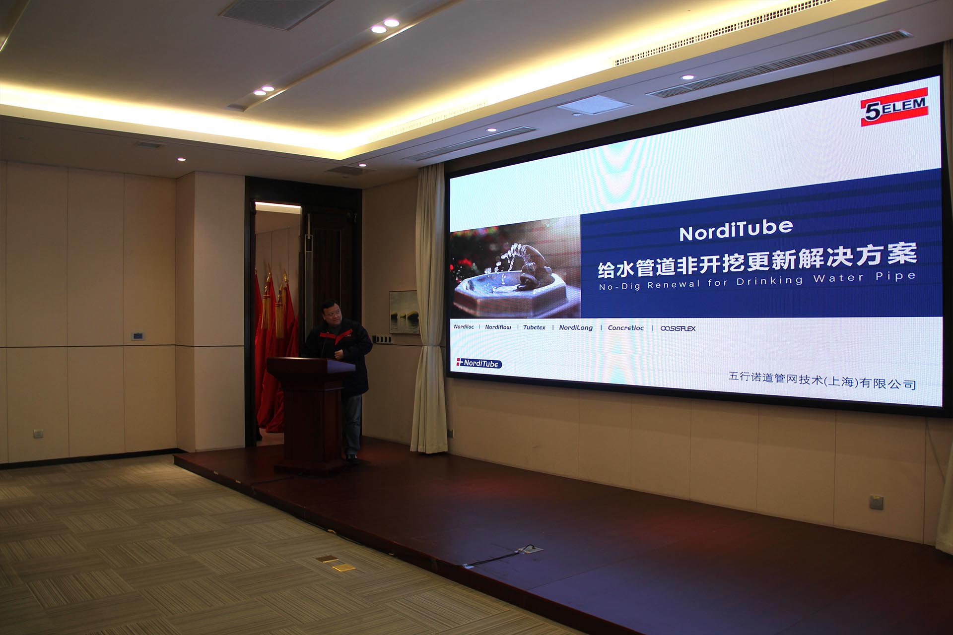 緊接著,五行科技股份有限公司總工程師秦慶戊先生分享主題演講“NordiTube給水管道非開挖更新解決方案”,與參會嘉賓共同探討城鎮供水管網更新建設,分享供水管道非開挖更新的技術成果。